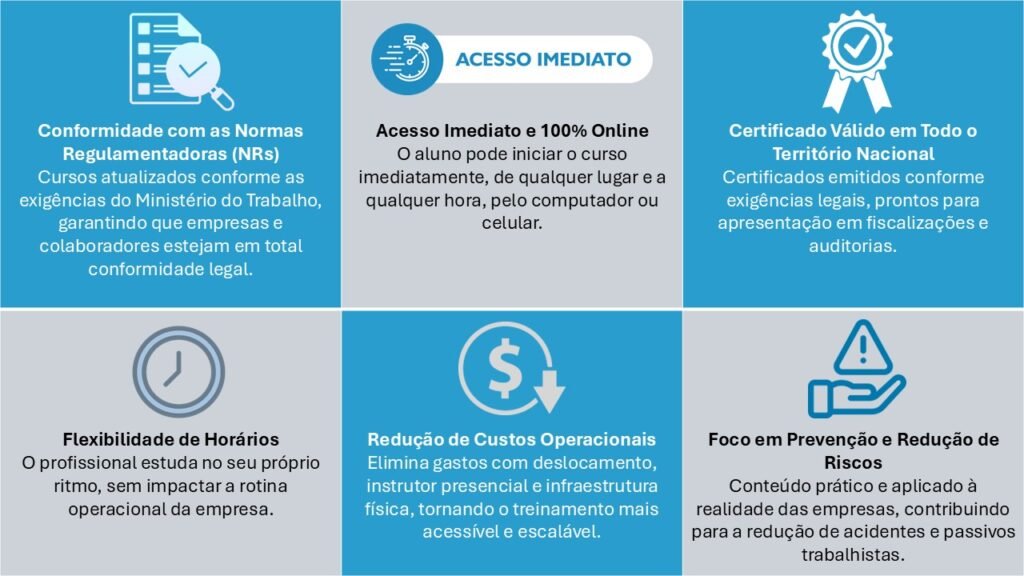 Cursos 100% online, acesso imediato, flexibilidade para estudar no seu ritmo e certificados reconhecidos em todo território nacional.